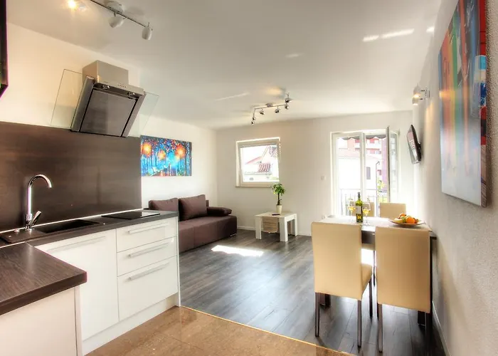Situado en Rovinj, Apartments Nebuloza está a 18 minutos a pie del Acuario de Rovinj, ofreciendo a sus huéspedes baños públicos calientes. El apartamento también dispone de una terraza con mesa de comedor.